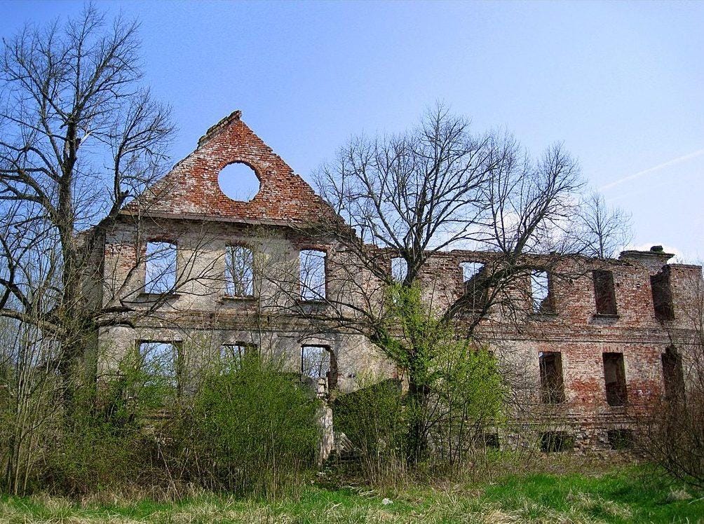You can see from the map that Piltene, as it is now known, sat on the River Windau, now the Venta. A bit further up this river to the south east is the village of Zlekas. This is where my building story starts. The village has a sad claim to fame. It was near the site of a Nazi massacre of 160 civilians during the Second World War, ordered by the sadistic Friedrich Jeckeln, Obergruppenfuehrer of the SS in Latvia. He was known for his favoured method of burying Jews alive in mass graves. Well before such horrific episodes, a large manor house was constructed by the von Behr family on the outskirts of the village, which was at the time known by the German name Schleck. The building now lies in ruins and many photos (and a map) of the historic site taken up to the present day can be found on Google Maps. My wife and I took some photos of the property in 2008 but we seem to have misplaced many of these, so I’ve ‘borrowed’ a great photo from this blog post (which gives the correct attribution).