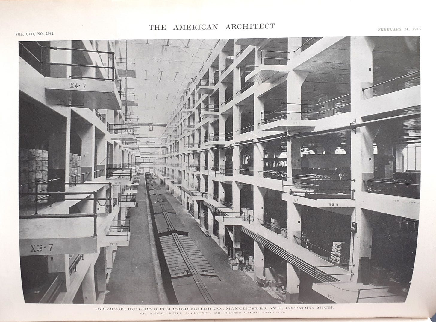 The relationship between these two types of building became more closely aligned with the construction of ‘daylight factories’ at the start of the 20th century in North America. These were large factories built using reinforced concrete skeletons and with significant glazing to allow more natural light inside. The epitome of the genre was Henry Ford’s vast and expandingModel-T car factory outside Detroit, started in 1912 (see below). I first posted about this place and another ‘daylight factory’ under Building #7.